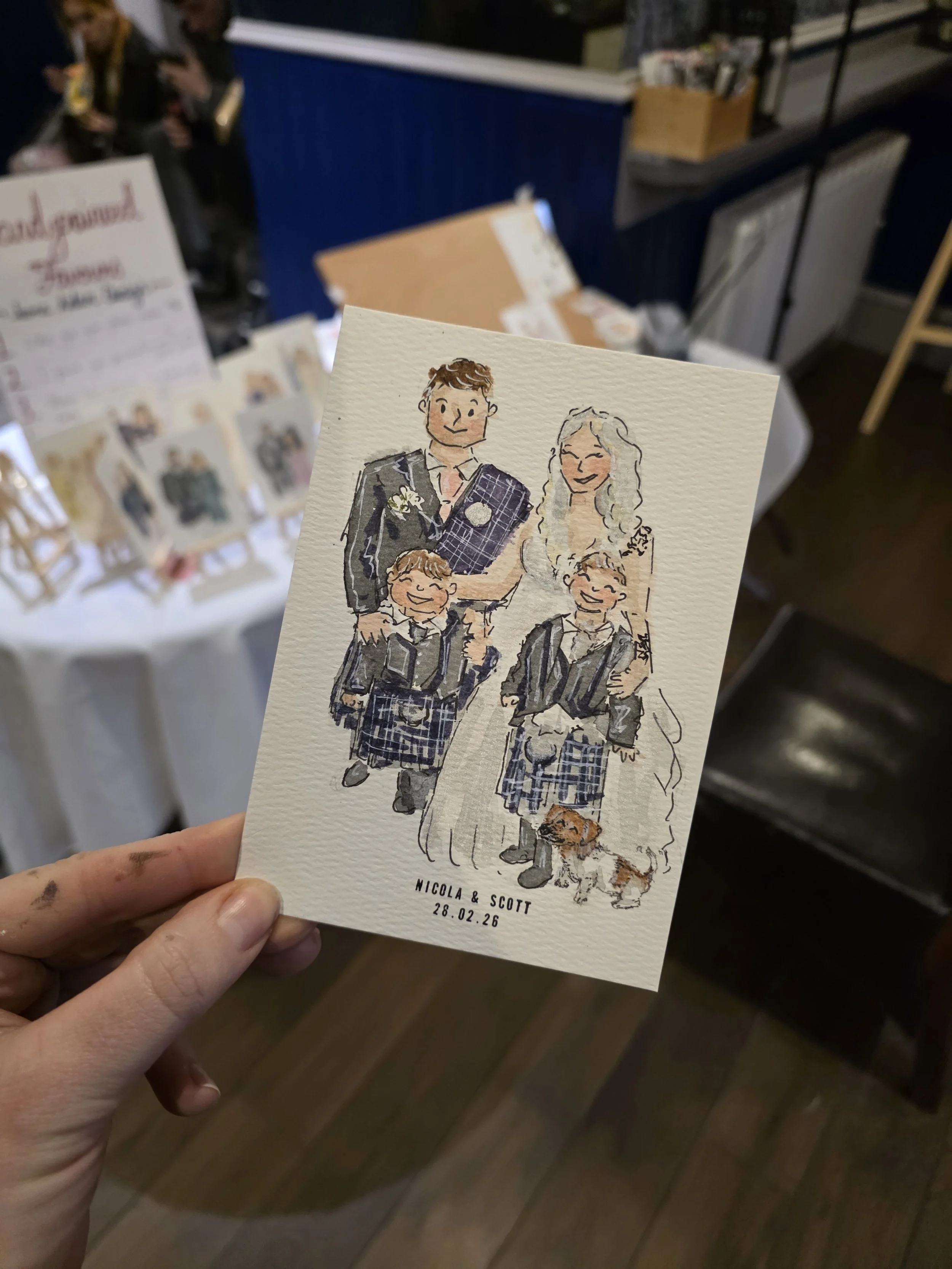 I paint quick, charming portraits of your guests during your celebration, keeping everyone entertained and giving them a unique memento